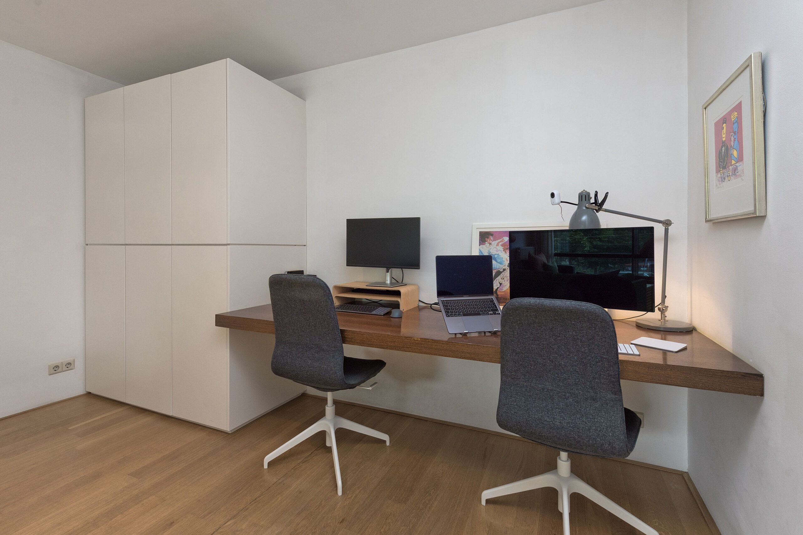 Het gebouw Hoogwerf uit 2001 waar dit appartement deel vanuit maakt is ontworpen door het Zwitserse architectenbureau Diener & Diener. Het complex vormt samen met het aan de overzijde gelegen gebouw Hoogkade een architectonisch geheel. Het driekamerappartement van circa 115m2 ligt op de eerste verdieping en is bereikbaar met een lift. Het appartement heeft door de grote kamers een open karakter. De grote schuiframen zorgen voor veel daglichttoetreding waardoor het ruimtelijke open effect nog meer tot uiting komt. Er is nu een slaapkamer, een eetkamer en een woonkamer maar de woonkamer kan gebruikt worden als tweede slaapkamer en de eetkamer als combinatie woon-/eetkamer zonder dat het ontwerp aangetast wordt. In de onderbouw is er een gemeenschappelijke fietsenberging met twee fietsplekken (op nummer) en een eigen berging aanwezig. De parkeerplaats ligt aan de overkant van de straat in het gebouw Hoogkade.